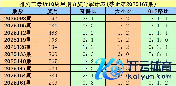 上期回来:陈设三第2025167期奖号为267。其中奖号奇偶比为1:2让球网体育信息,大小比为2:1,012路比为1:1:1。