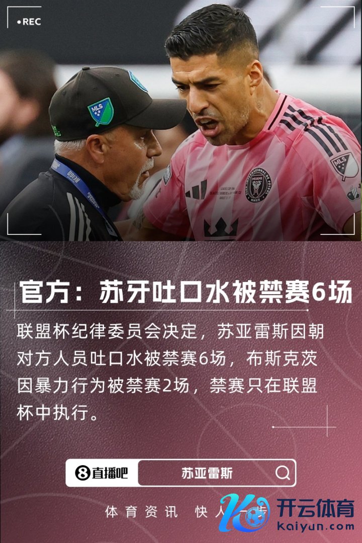 定约杯决赛迈阿密海外0-3不敌西雅图海湾东说念主,赛后两边发生粉碎,苏亚雷斯向对方职责主说念主员吐涎水,布斯克茨则向对方中场巴尔加斯挥拳。