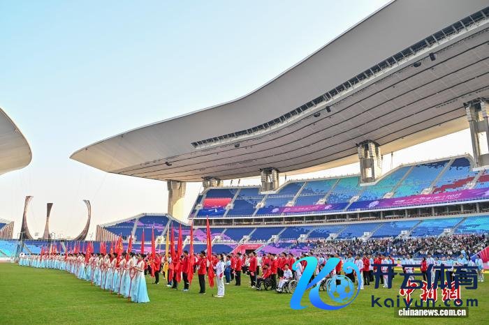 12月9日,世界第十二届残疾东谈主通顺会暨第九届突出奥林匹克通顺会田径表情在位于广州的广东奥林匹克体育中心开赛。图为田径表情开赛庆典。记者 陈骥旻 摄