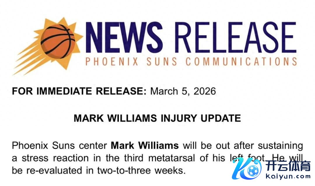 太阳官方通知:马威左脚第三跖骨出现应力反映(骨骼过度使用毁伤的早期阶段)让球网体育信息,两到三周后从头进行评估。