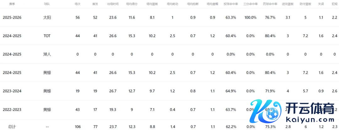 本赛季协议庚的马威(薪资628万好意思元),为新东家出战56场首发52次,场均上阵23.6分钟孝敬11.6分8.1板(3.1前场板)1助,投篮射中率63.3%。