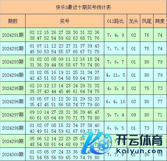 雅瞻念8第2024300期奖号为:01 03 05 07 24 33 36 39 40 43 51 54 55 56 59 65 70 74 76 80,其中奖号012路比为7:7:6让球网体育信息,0路号码(7个):03、24、33、36、39、51、54,1路号码(7个):01、07、40、43、55、70、76,2路号码(6个):05、56、59、65、74、80。