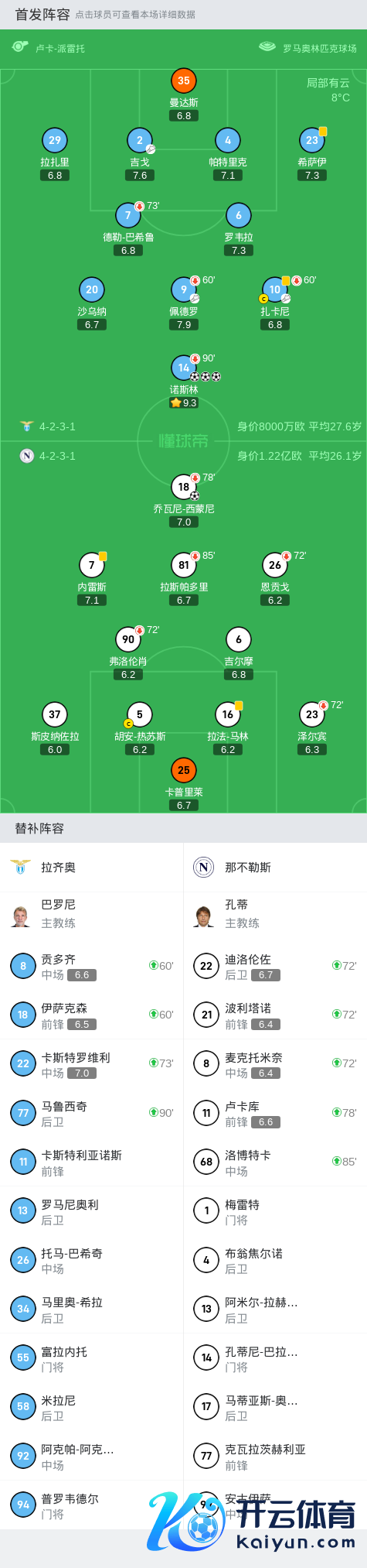 第78分钟,那不勒斯再作念退换,卢卡库上场替换乔瓦尼-西蒙尼
