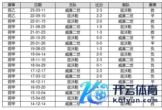 兹沃勒 VS 威廉二世两队近10年的交战次数为18场,兹沃勒8胜4平6负,赢球概率为44.4%,平局概率为22.2%,输球概率为33.3%。