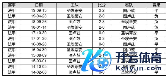 图卢兹 VS 圣埃蒂安两队近10年的交战次数为12场,图卢兹2胜6平4负,赢球概率为16.7%,平局概率为50.0%,输球概率为33.3%。