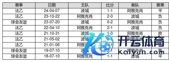 波城 VS 阿雅克肖两队近10年的交战次数为9场,波城2胜3平4负,赢球概率为22.2%,平局概率为33.3%,输球概率为44.4%。
