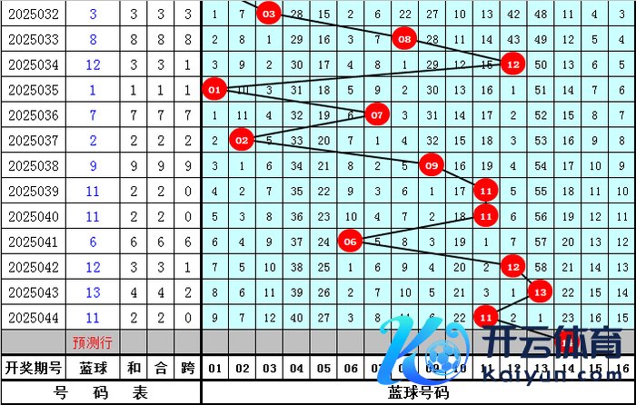 蓝球余数分析:最近7周星期四开出6个蓝球余数,通常蓝球余数显然活跃,本周星期四摒除近期已出现的蓝球余数,谨防温冷蓝球余数回补,关心蓝球14。