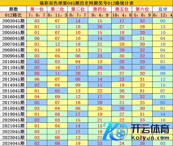 蓝球分析:第045期历史同时蓝球号码012路比开出6:12:4,其中2路蓝球昭彰偏少,本期毁灭2路蓝球,眷注蓝球12。