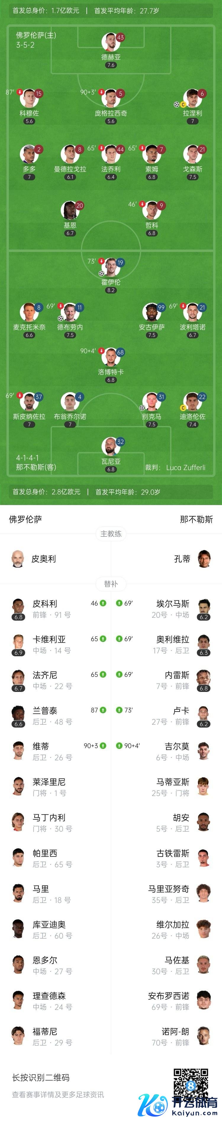 全场比赛放手,那不勒斯3-1佛罗伦萨。