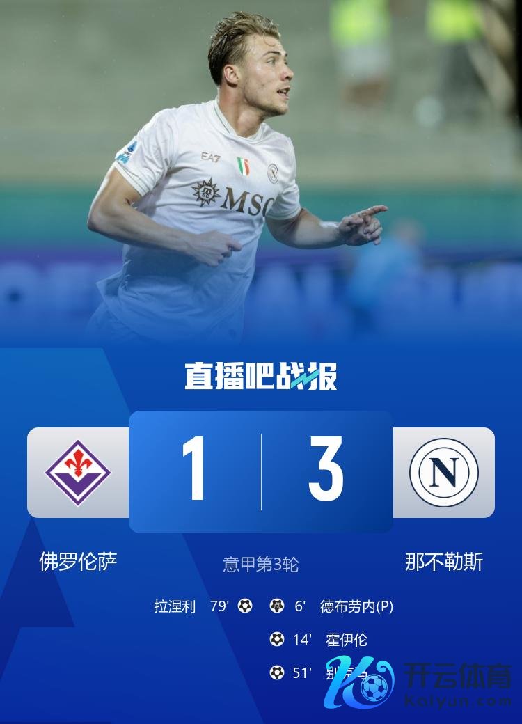 直播吧9月14日讯 北京时辰9月14日凌晨2时45分体育集锦,意甲第3轮,那不勒斯作客弗兰基球场对阵佛罗伦萨。上半场,德布劳内点射首开记载,随后霍伊伦扩大跳跃上风。那不勒斯半场2-0跳跃佛罗伦萨。下半场,别克马破门,卢卡-拉涅利扳回一城。最终那不勒斯3-1打败佛罗伦萨,登上积分榜榜首。
