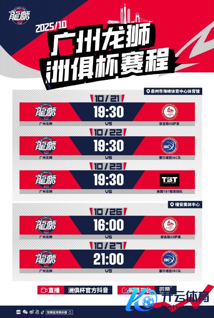 2025洲俱杯海外管事篮球冠军赛 广州龙狮赛程如下:
