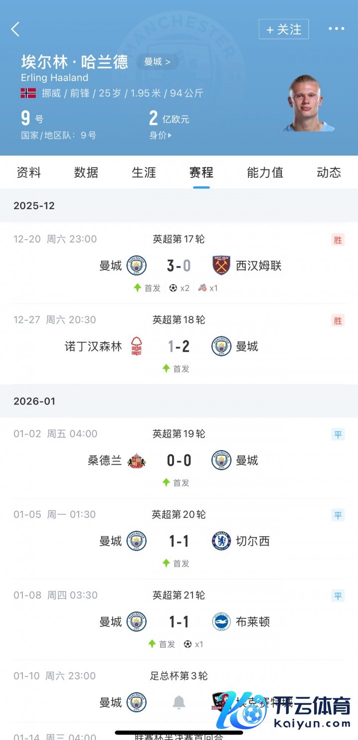 圣诞节前,哈兰德2射1传助曼城3-0打败西汉姆,而在圣诞假期后,哈兰德4轮比赛17次射门6次射正,仅打进1粒点球,错失2次良机。