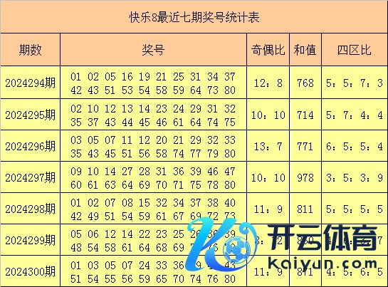 福彩舒畅8第2024300期开出奖号:01 03 05 07 24 33 36 39 40 43 51 54 55 56 59 65 70 74 76 80,其中奖号奇偶比为11:9,和值为871,四区比为4:5:6:5。