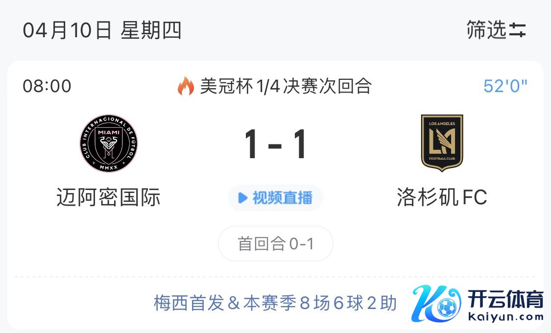 04月10日讯 好意思冠杯1/4决赛次回合,迈阿密海外上半场1-1洛杉矶FC,总比分1-2逾期。