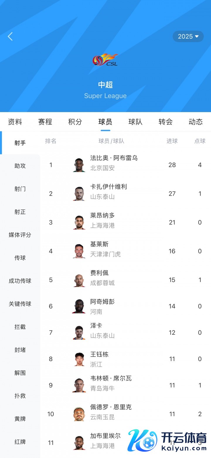 11月22日讯 2025赛季中超适度,末轮比赛法比奥大四喜,瓦科梅开二度,最终法比奥反超瓦科夺得本赛季中超金靴。