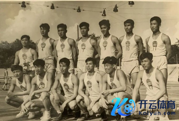 1954年6月,在波兰索波特市比赛时合影。前排右二为郭玉佩,前排右四为中国篮球名东谈主堂成员余邦基。