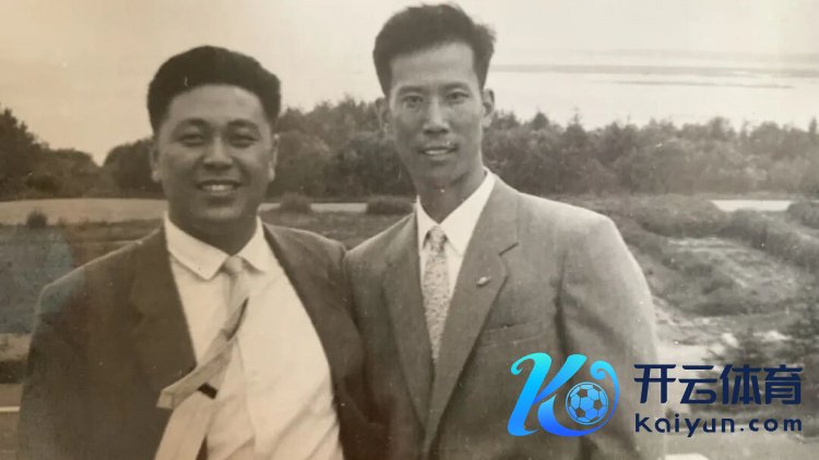 出访比赛时郭玉佩(右)与陈文彬合影。