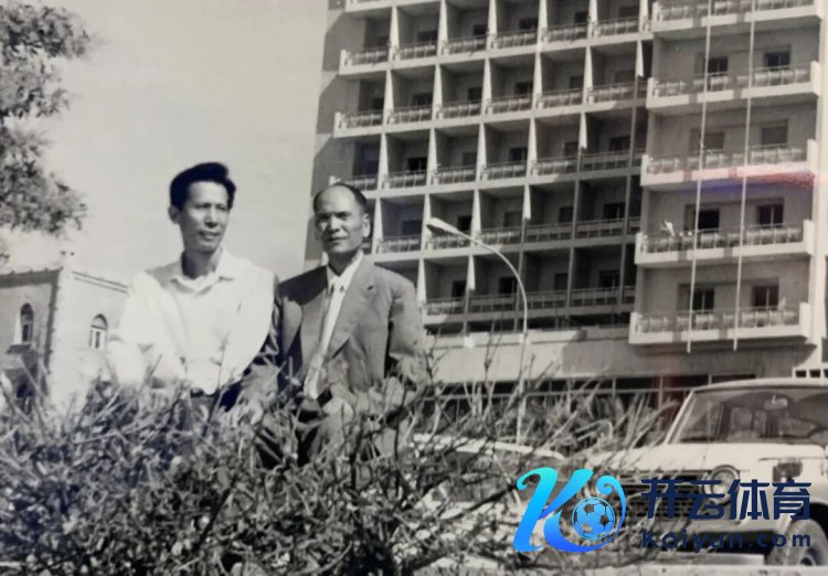 1978年,在叙利亚打听比赛时,郭玉佩(右)与余邦基合影。