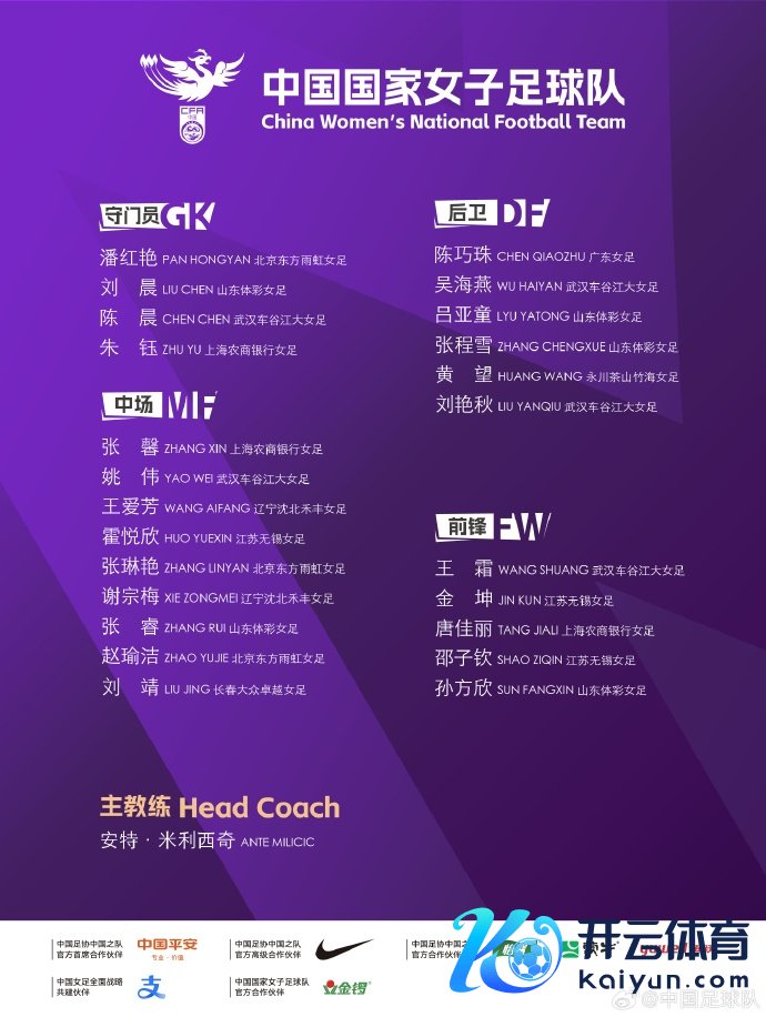 12月28日讯 足协公布新一期中国女足名单,这将是2026年首期女足的集训名单,依旧是米利西奇带队。
