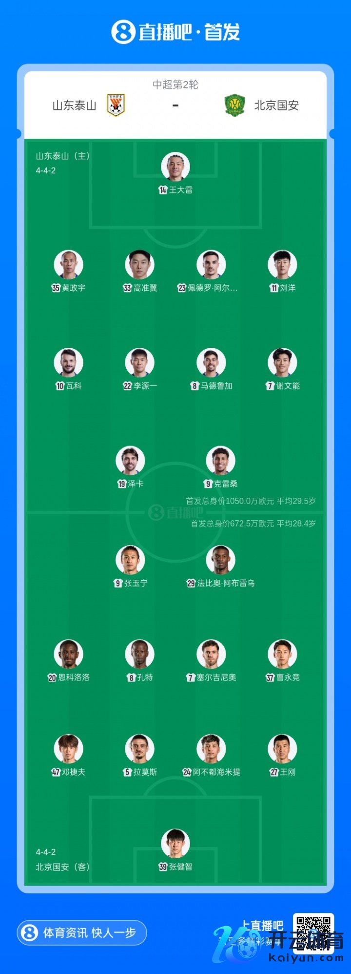 中超首轮比赛,泰山3-0大捷辽宁铁东说念主,当今球队积负3分,暂列中超第11位。国安首轮则是2-0打败武汉三镇,当今球队负2分,排在中超第8位。本场比赛若分赢输,两队之间的胜者将使积分不再是负数。