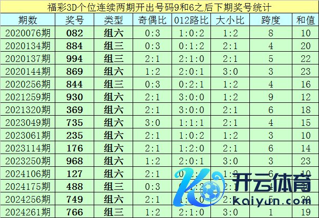 个位号码:最近两期个位开出号码为9-6,在福彩3D历史开奖中,前后两期个位分离开出号码9-6的奖号出现了74次。最近15期个位9-6组合出现之后,其下期奖号分离为:082-884-994-869-844-930-369-735-235-176-968-127-488-749-766;