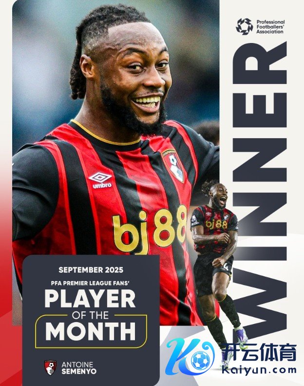 10月13日讯 PFA(英格兰处事球职工会,Professional Footballers' Association)官方告示,伯恩茅斯边锋塞梅尼奥当选球迷票选英超9月最好球员。