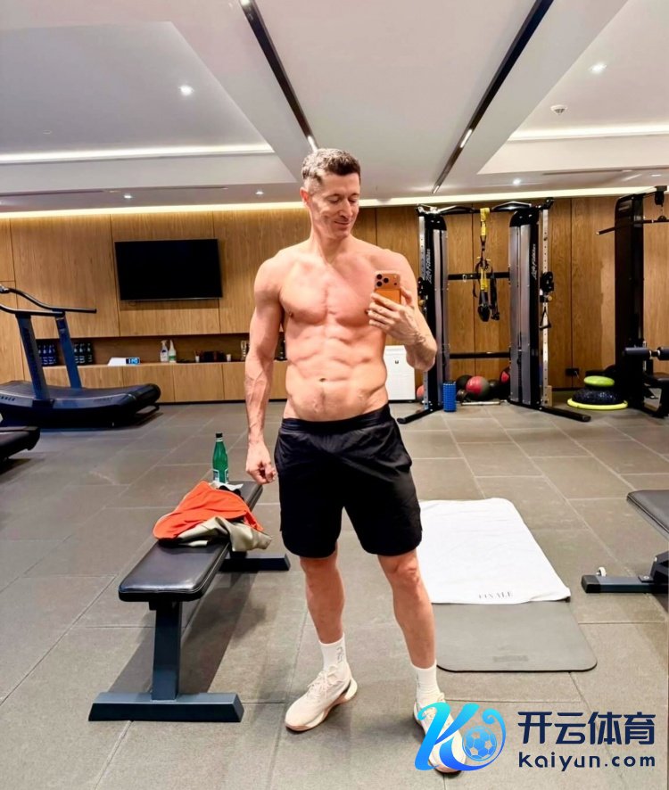 莱万社媒晒出在健身房内的自拍照,这位37岁的巴萨先锋肌肉线条显着。