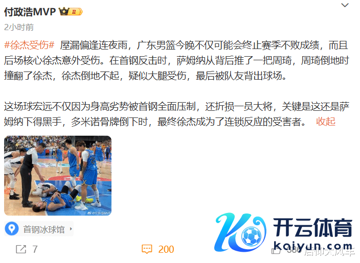 如实,尽管今晚的比赛萨姆纳轰下35分是撑起广东队前三节主要得分的元勋,场上发扬如实无可争议,攻防两头也如实满盈拼,他也在第四节拼到了受伤下场,派头上没的说,但有一说一,徐杰的受伤如实和他分不开筹办,这个锅只可由萨姆纳来背。