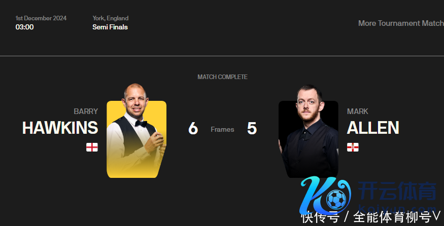北京技艺12月1日音问,2024斯诺克英锦赛持续进行。的第二场半决赛,“霍师父”巴里-霍金斯在4-5被“小钢炮”马克-艾伦拿到赛点的情况下,轰出单杆114分,总比分6-5大逆转晋级决赛。第一轮,霍金斯以6-4爆冷淘汰英锦赛8冠王“火箭”罗尼-奥沙利文。