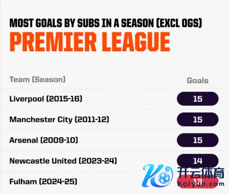 据Opta统计,本赛季富勒姆替补球员攻入13粒英超进球,英超历史单赛季替补进球数目第5多。